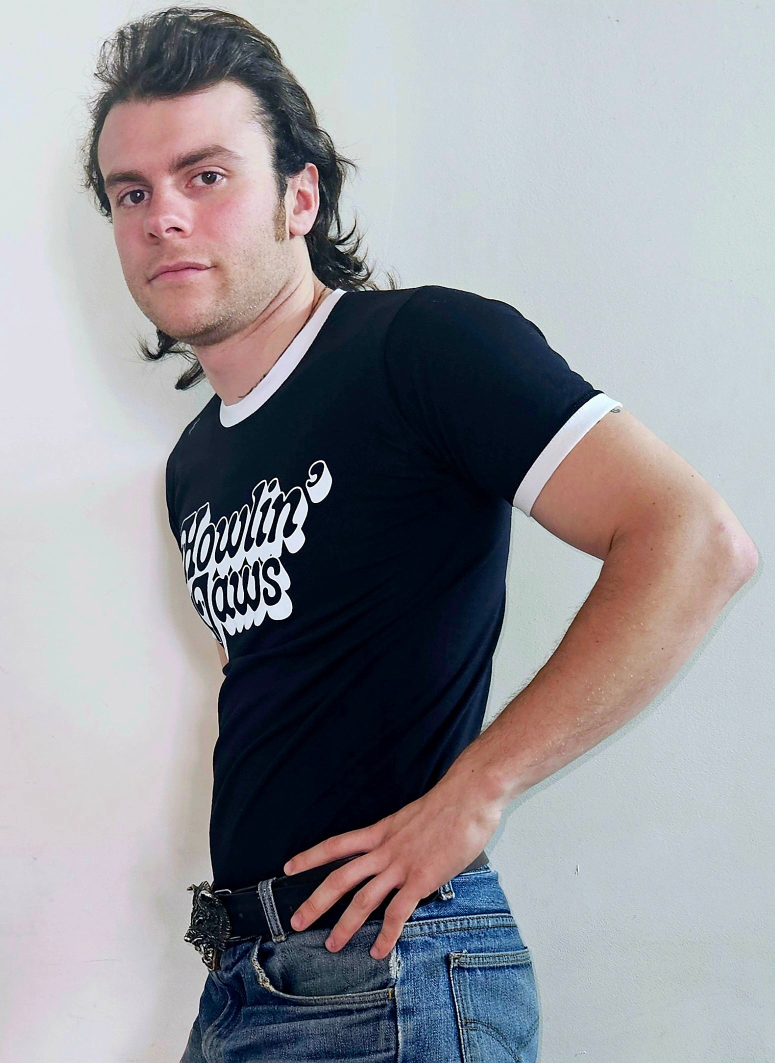 TEE-SHIRT NOIR, LISERETS BLANCS AU COL ET AUX MANCHES, LOGO BLANC "Howlin' Jaws"