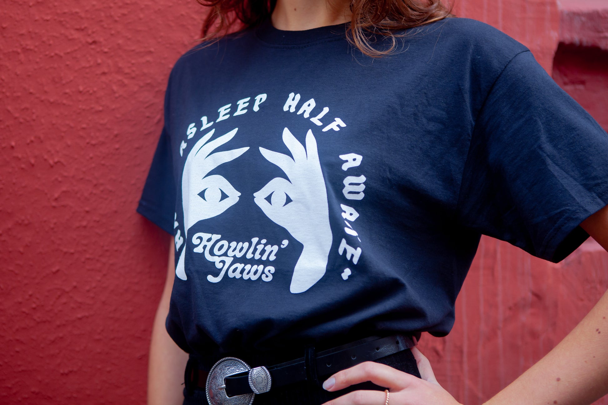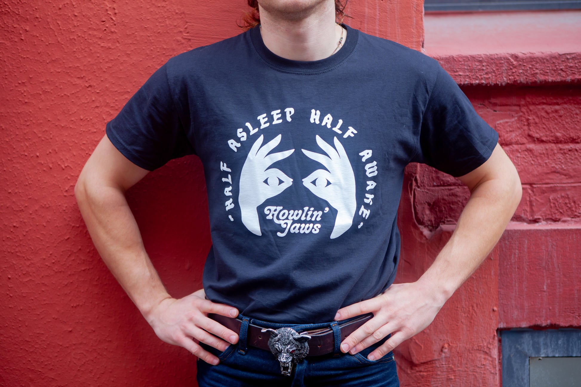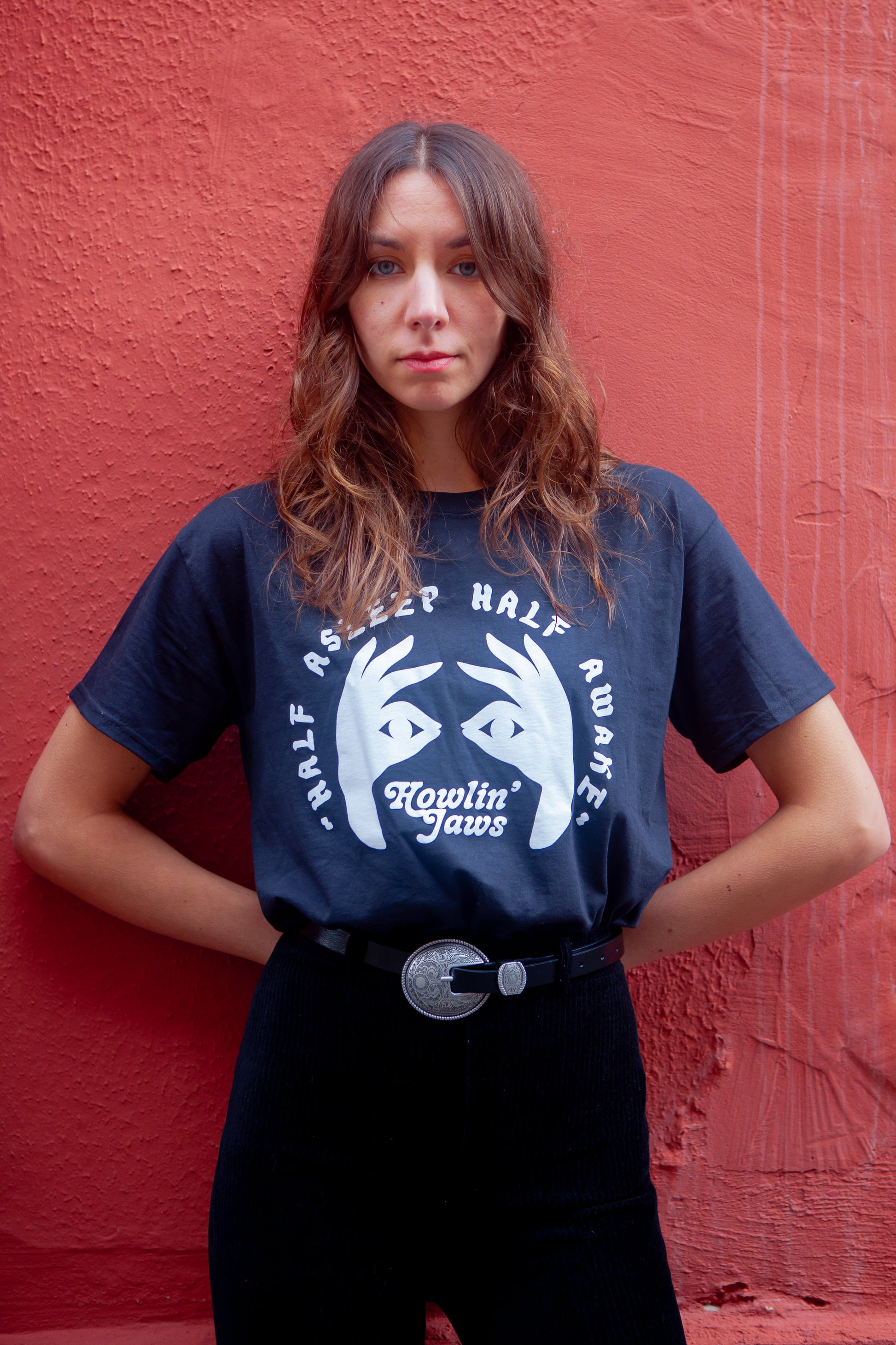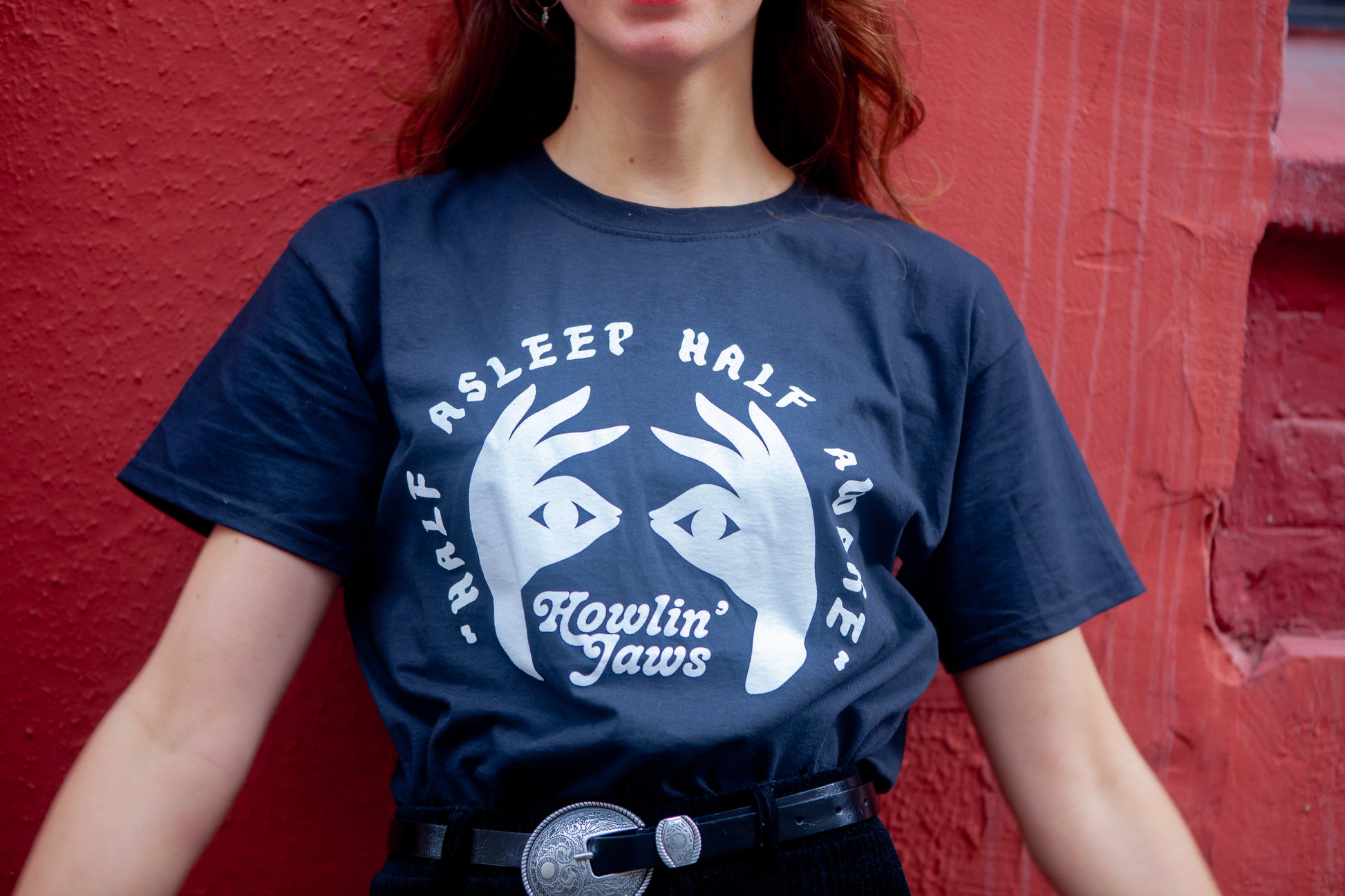 TEE-SHIRT NOIR, LOGO BLANC "Half Asleep Half Awake, Howlin' Jaws "