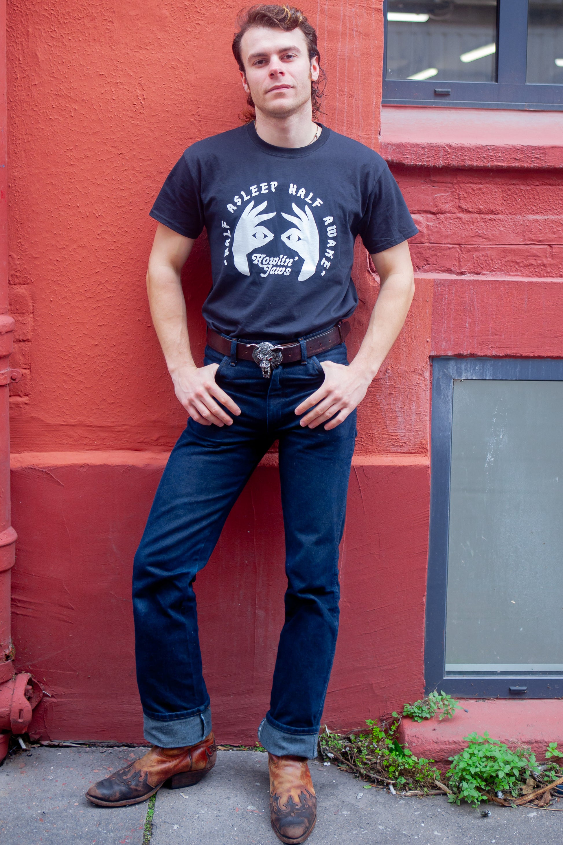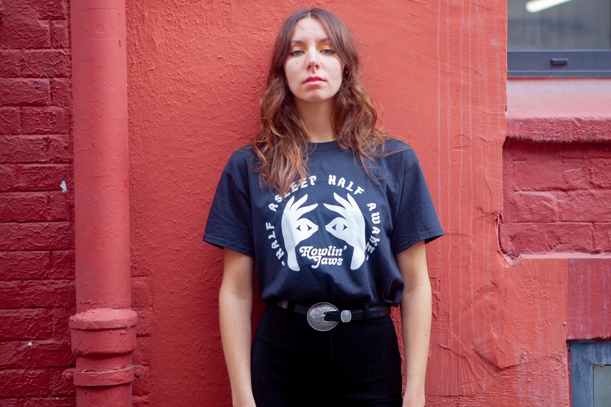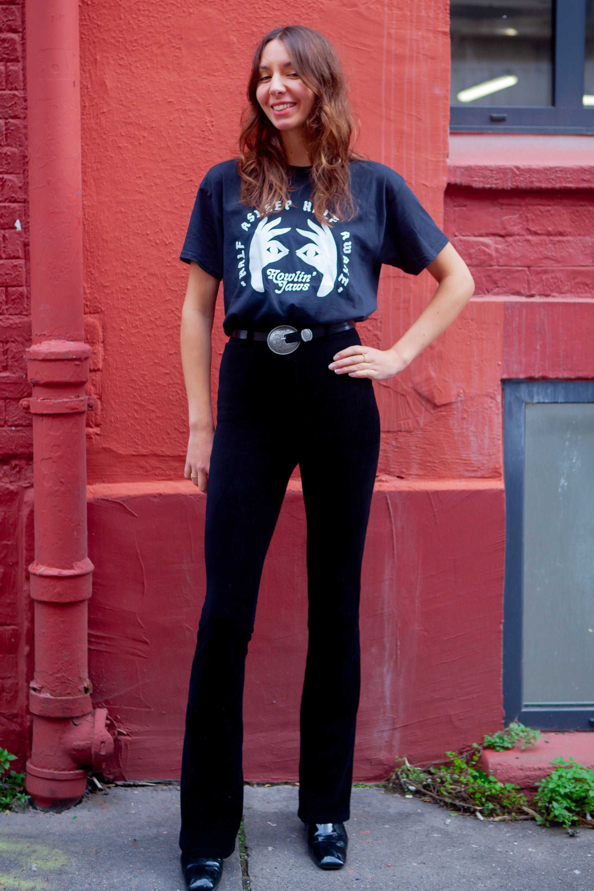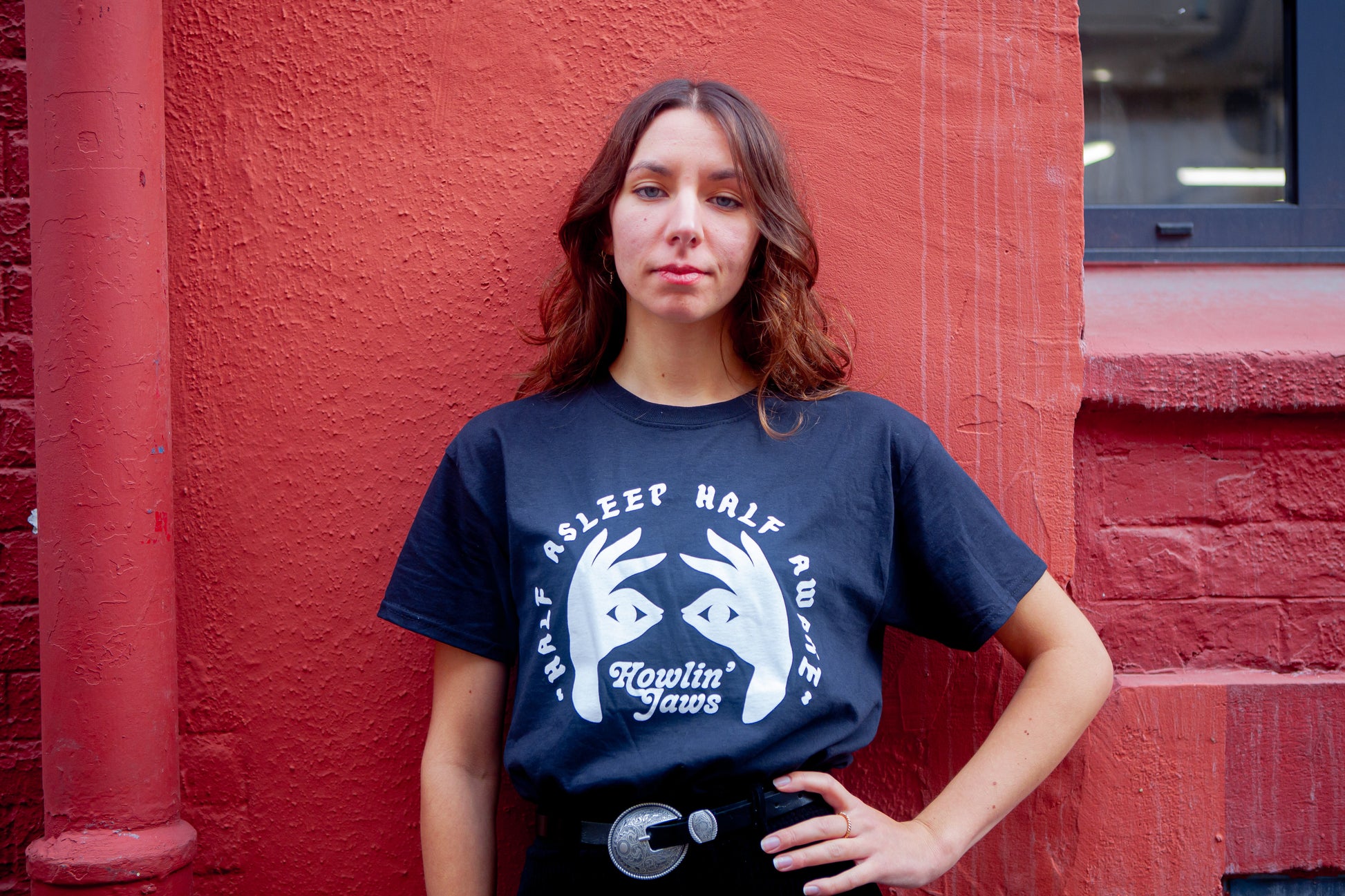 TEE-SHIRT NOIR, LOGO BLANC "Half Asleep Half Awake, Howlin' Jaws "